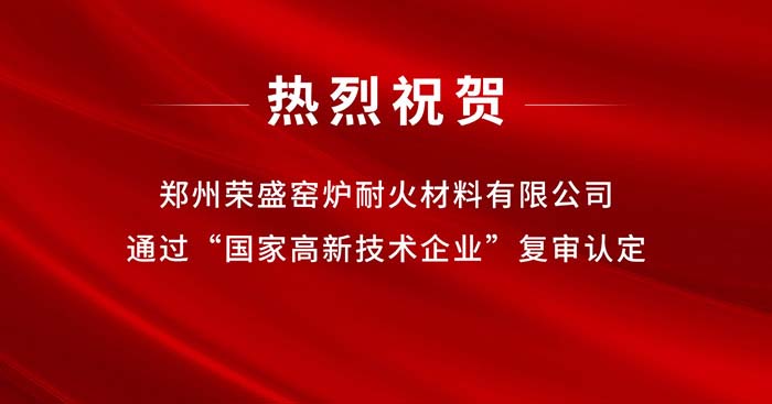 喜訊!榮盛耐材順利通過「國家高新技術企業」復審認定!