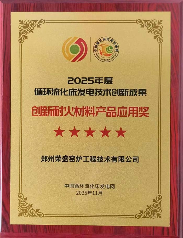 在本次大會上,鄭州榮盛窯爐工程技術(shù)有限公司憑借其在耐火材料產(chǎn)品研發(fā)與應(yīng)用方面的良好表現(xiàn),榮獲2025年度循環(huán)流化床發(fā)電技術(shù)創(chuàng)新成果“創(chuàng)新耐火材料產(chǎn)品應(yīng)用獎”。該獎項是對公司在循環(huán)流化床鍋爐耐火材料領(lǐng)域持續(xù)創(chuàng)新、技術(shù)突破與產(chǎn)業(yè)化應(yīng)用成果的權(quán)威認(rèn)可。