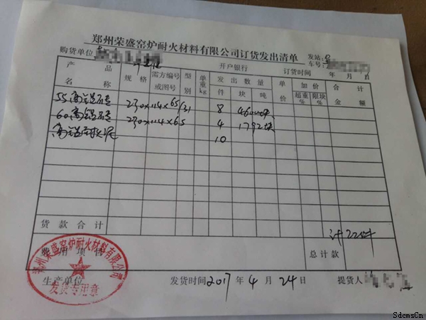 榮盛耐材訂貨發(fā)出清單